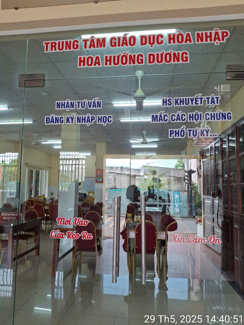 Trung tâm Giáo dục Hòa nhập Hoa Hướng Dương là một cơ sở chuyên biệt, hỗ trợ trẻ mầm non và trẻ cần can thiệp sớm, bao gồm trẻ tự kỷ, chậm phát triển trí tuệ, chậm nói, khiếm thính, tăng động và các rối loạn phát triển khác. Với đội ngũ chuyên môn tận tâm và chương trình can thiệp khoa học, Trung tâm đã đồng hành cùng nhiều gia đình trong hành trình giúp trẻ phát triển khả năng và hòa nhập cộng đồng.