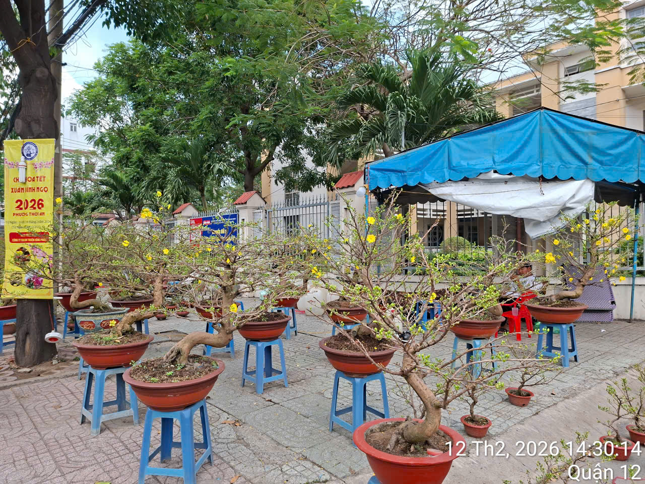 Từ sáng sớm đến chiều muộn, dòng người tấp nập qua lại, chọn mua những chậu mai vàng rực rỡ, những cành đào hồng thắm, cúc mâm xôi tròn đầy hay vạn thọ vàng ươm tượng trưng cho may mắn, sung túc. Hương hoa thoang thoảng hòa quyện cùng tiếng cười nói, tiếng xe cộ tạo nên bản hòa âm đặc trưng của những ngày cuối năm. Không khí ấy lan tỏa vào khuôn viên nhà trường, làm cho không gian càng thêm rộn ràng.