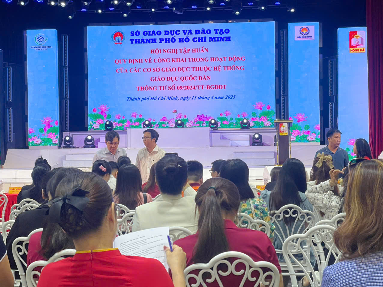 Sáng ngày 11/04/2025, tại Trường THCS – THPT Hồng Hà, Sở Giáo dục và Đào tạo Thành phố Hồ Chí Minh đã tổ chức buổi tập huấn triển khai Thông tư 09/2024/TT-BGDĐT về quy định công khai trong hoạt động của các cơ sở giáo dục thuộc hệ thống giáo dục quốc dân.