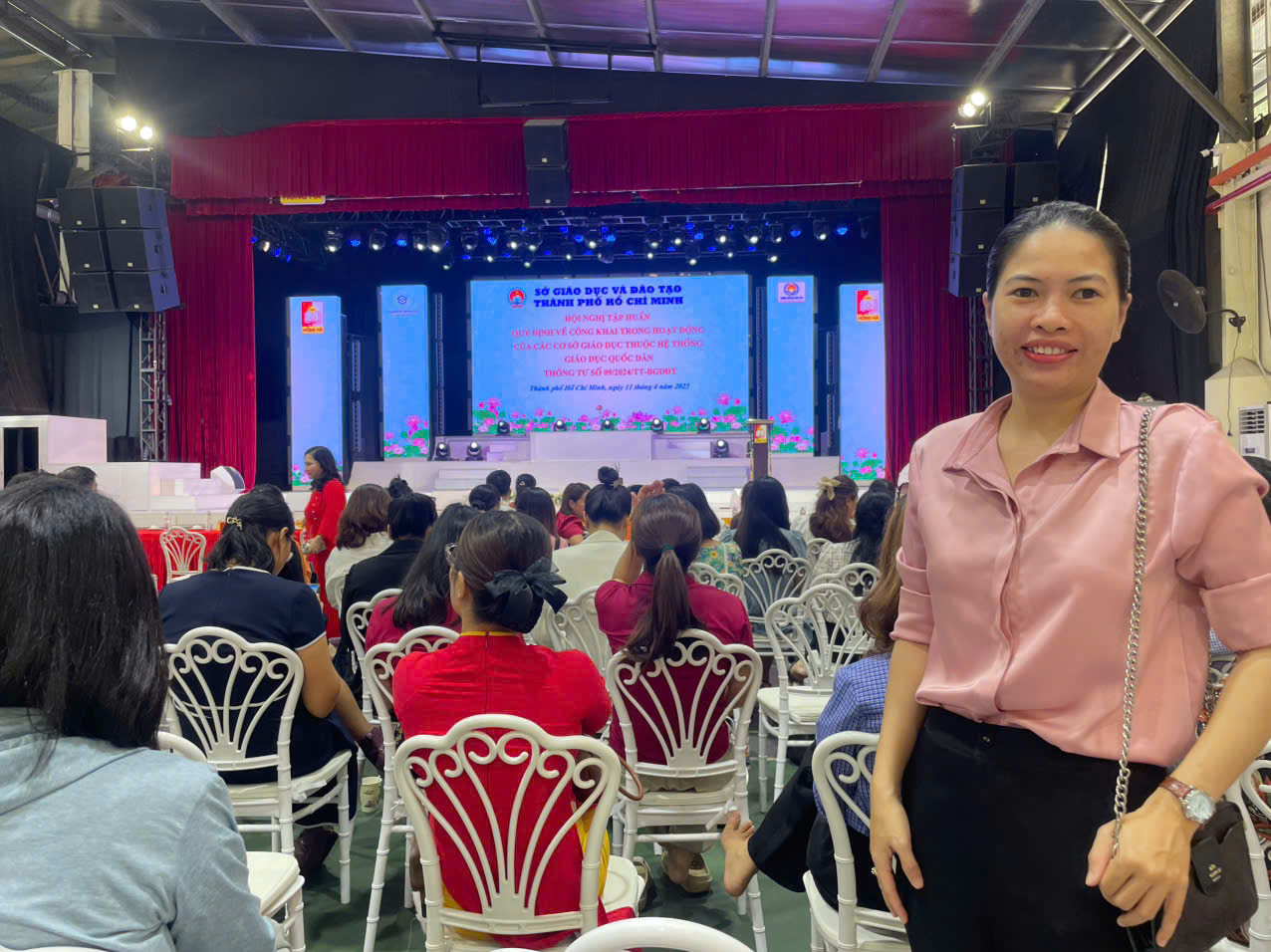 Buổi tập huấn thu hút sự tham dự của hơn 200 cơ sở giáo dục trên địa bàn Quận 12, Gò Vấp, Hóc Môn và Củ Chi. Trong đó, bà Trần Huỳnh Linh – Hiệu phó Trường Trung Cấp Ngọc Phước là đại diện tham dự của đơn vị.
