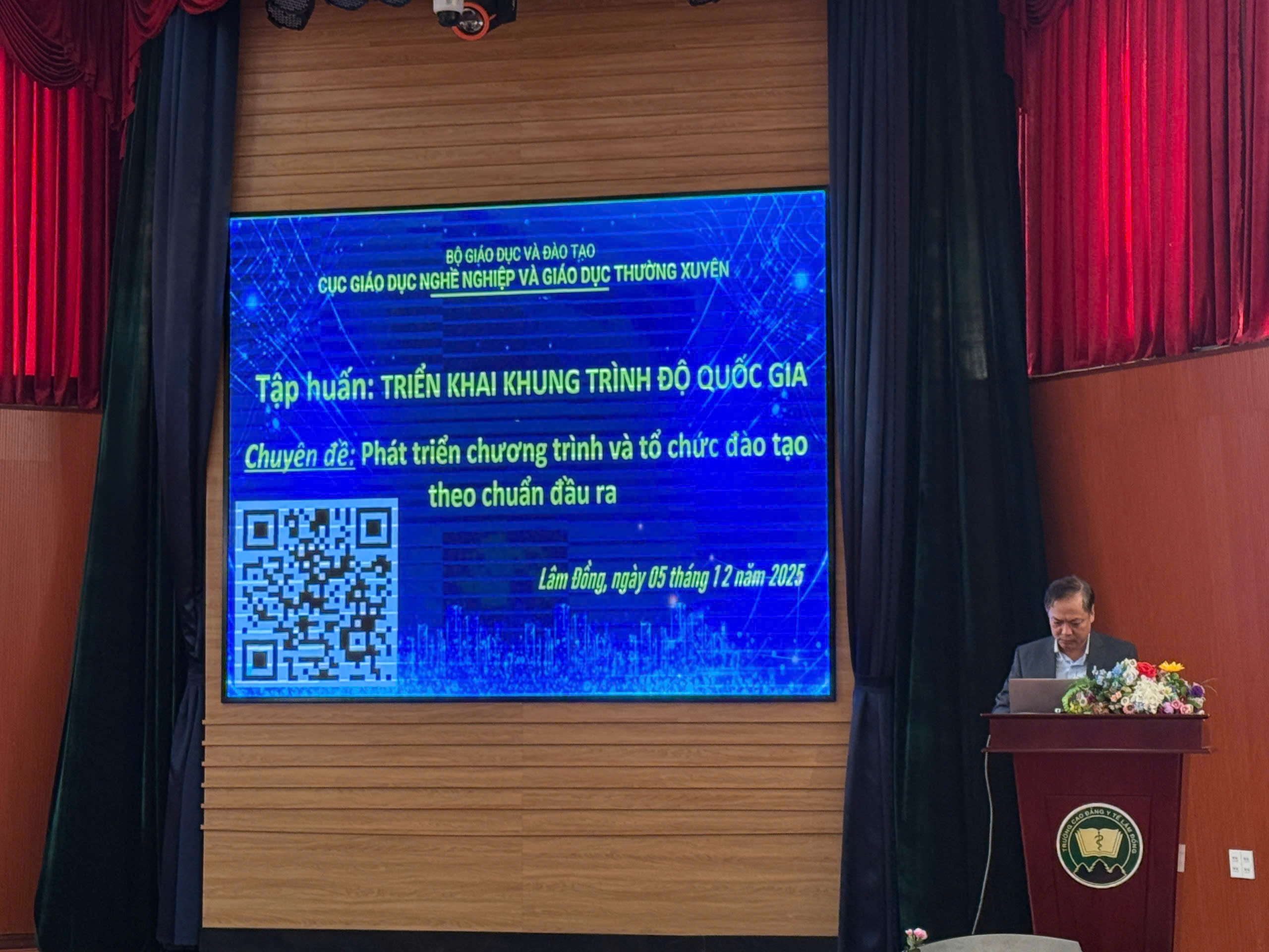 Ngày 05/12/2025, đại diện Trường Trung cấp Ngọc Phước gồm bà Võ Hồng Hạnh – Hiệu trưởng và ông Ninh Thái Phong – Trưởng phòng Quan hệ Doanh nghiệp đã tham dự Tập huấn triển khai Khung trình độ Quốc gia, với chuyên đề “Phát triển chương trình và tổ chức đào tạo theo chuẩn đầu ra” do Bộ Giáo dục và Đào tạo tổ chức tại Trường Cao đẳng Y Lâm Đồng.